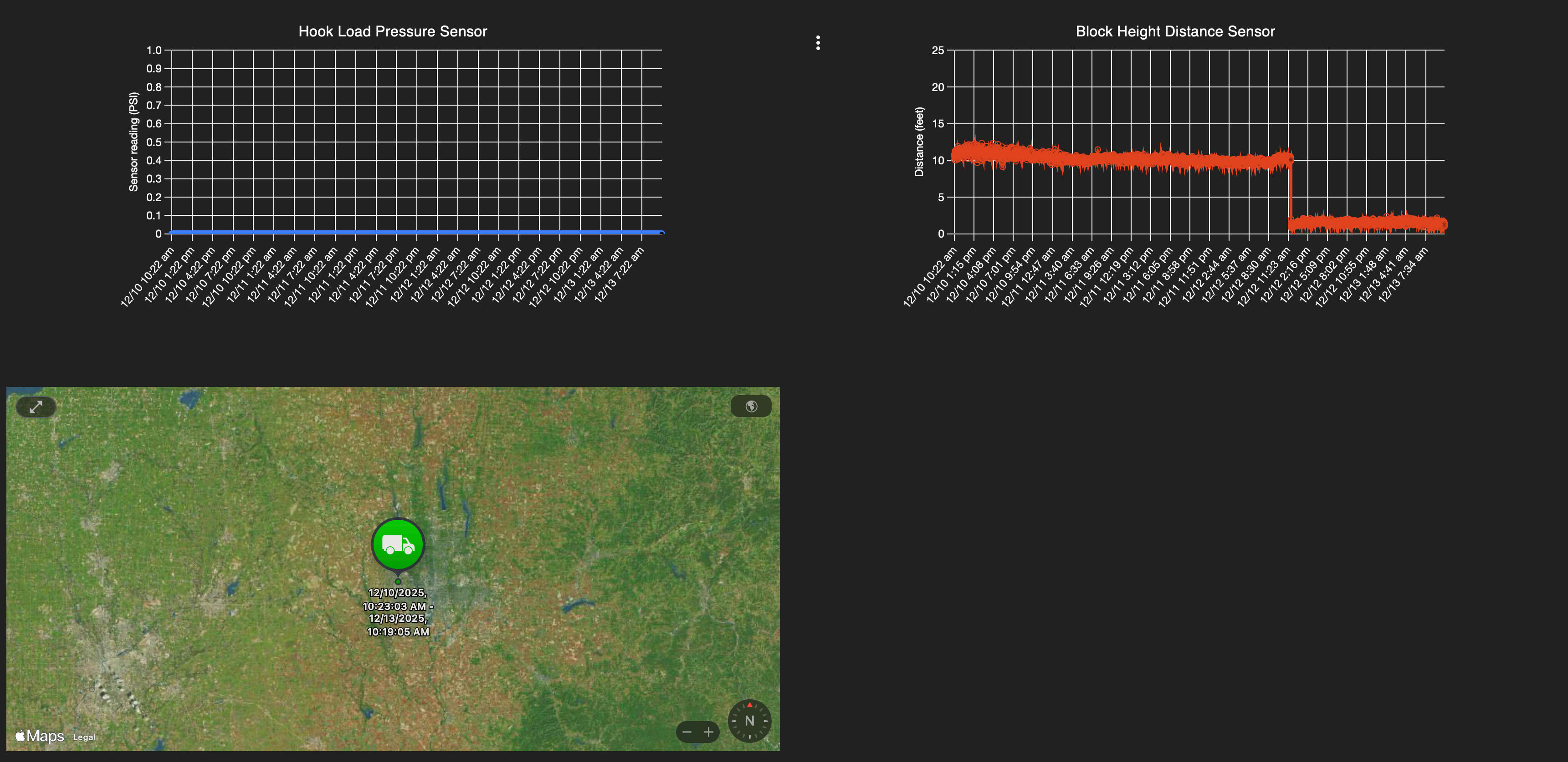 Pressure curves and traveling-block height are plotted in real time. When the pump strokes climb or the block starts moving faster than expected, you see it the moment it happens — from the office, home, or phone.Supervisors can watch the job live, spot inefficiencies immediately, and coach crews without burning windshield time.